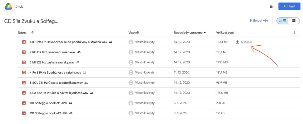 Jak stáhnout elektronické  CD, ze zaslaných odkazů, z Google disku.